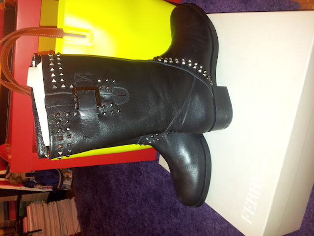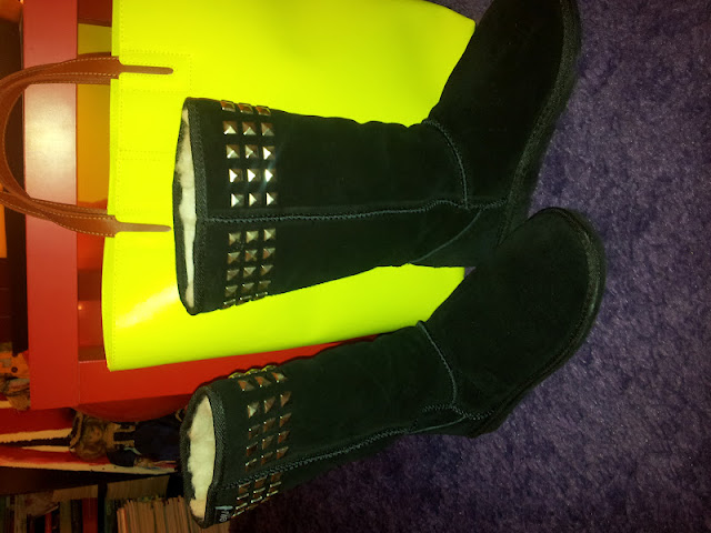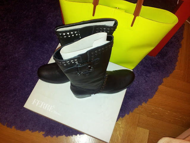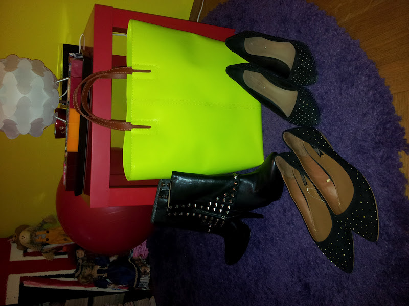 It is very cold and if I generally love winter ,hot chocolate and wrapping ina a soft knited woolen blanket with the scent of jasmine and candles while I am watching some good movie .I admit that this winter is still too much for me. The first movie on my play list was Girl with the dragon tatoo where starring Rooney Mara and Daniel Craig ,very good movie inspired by fisrt book written by Stig Lason.I recommend everyone to watch this movie.It is too cold to take some outfit photos and instead I will shoe you my studdied shoe collection and one new neon bag that waits some better time.